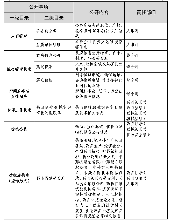 根据内容通过下列不同方式主动公开政府信息:1.国家药品监督管理局政府网站;2.国家药监局政务微信、微博等新媒体发布平台;3.各类新闻发布活动;4.其他新闻媒体。